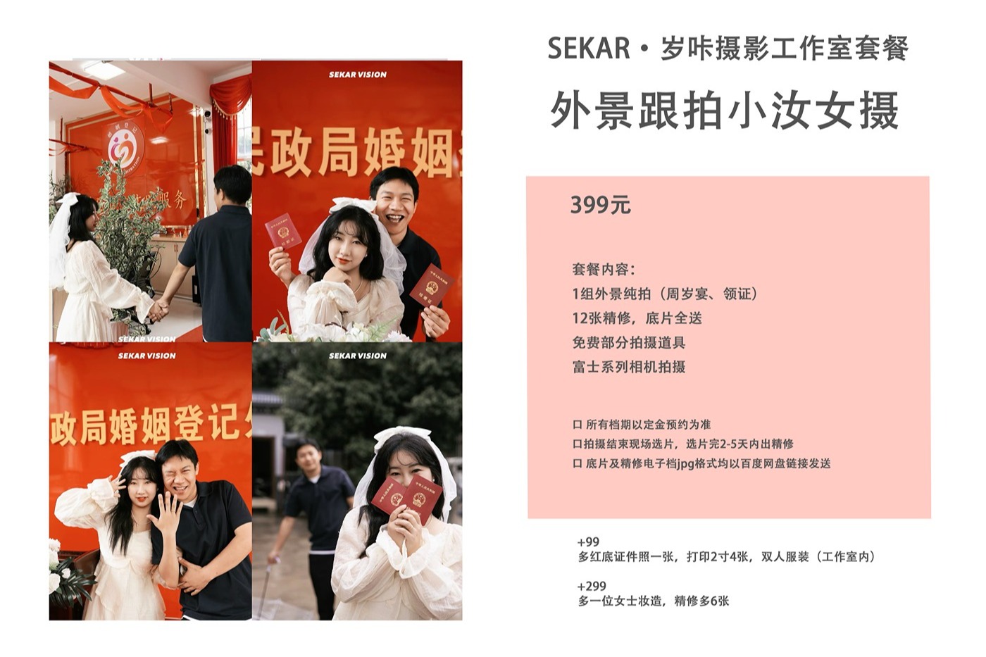 ·此套餐内不包含服装和妆造,需要加的详询客服 ·赠送底片为2M左右大小JPG